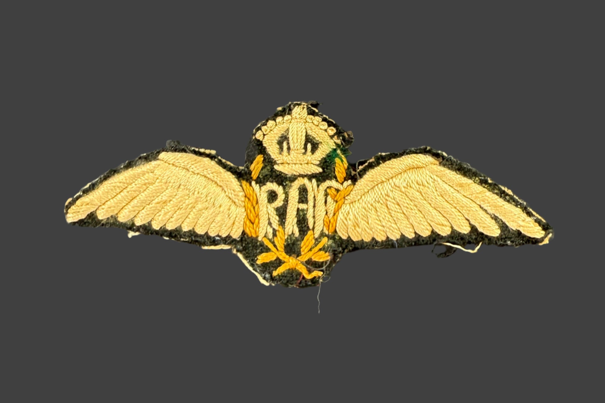 Late WWI - 1920s RAF Pilot Wings badge. Embroidered construction. Likely theatre made.