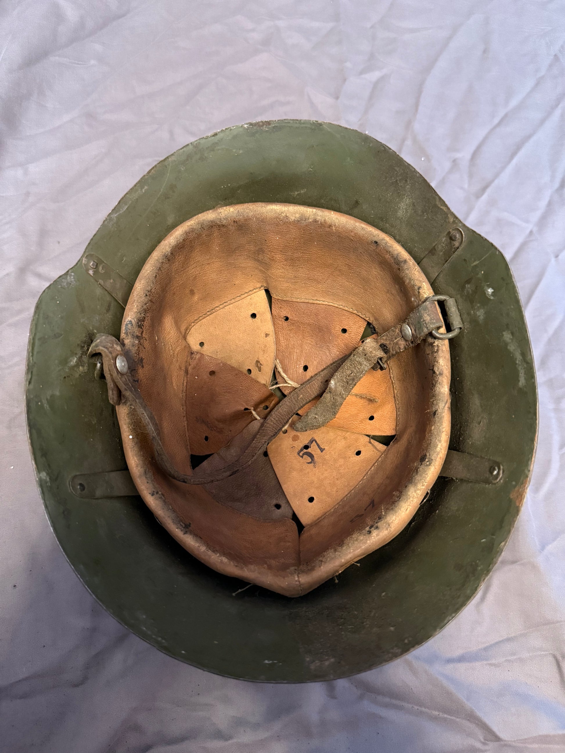 Bulgarian M36 Helmet - Type C. Of WWII or early post-war production. Complete with liner and chinstrap.