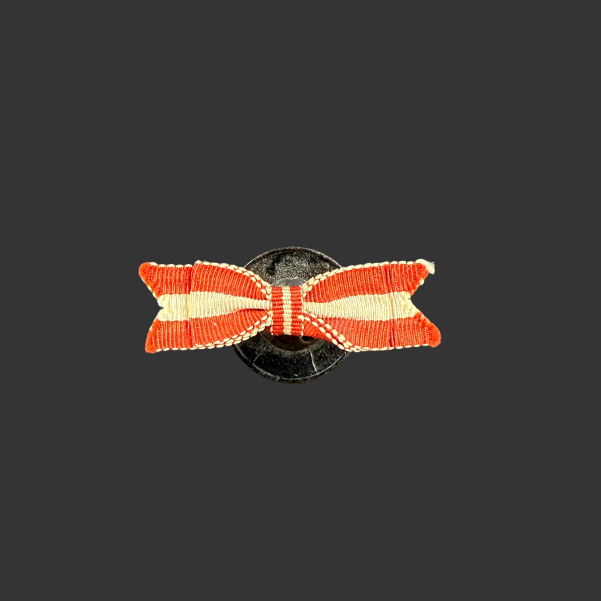 A Canada General Service Medal buttonhole ribbon as worn by a veteran of the Fenian Raids, circa 1900. Silk ribbon bow mounted on a small enamelled/painted button device. A scarce item and seldom seen.