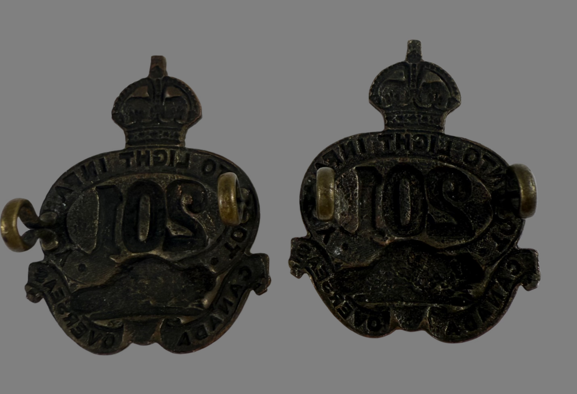 Canadian WWI - 201st Infantry Battalion (Toronto Light Infantry) Collar Badge Pair