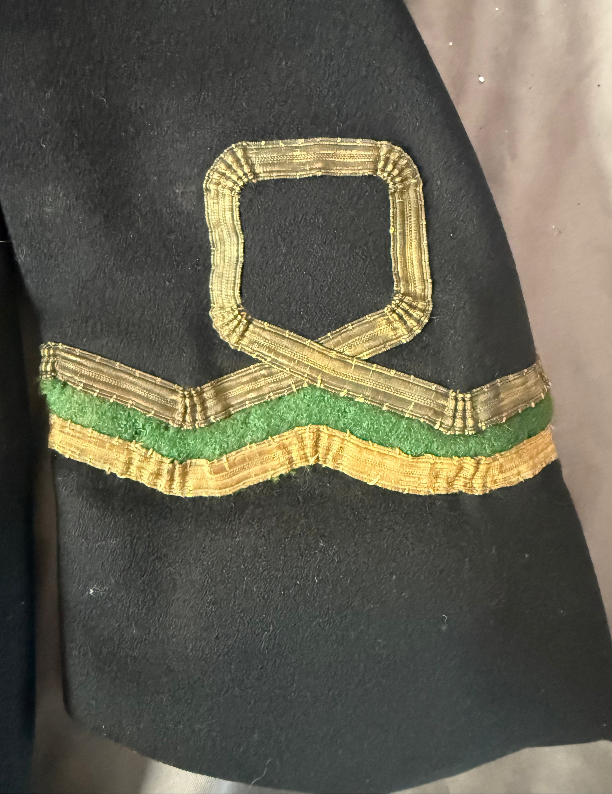 An interesting WWII period Royal Canadian Navy Volunteer Reserve uniform. High quality wool. In good shape with original buttons and sleeve rank to a Lieutenant (Engineer Branch). Includes pants.
