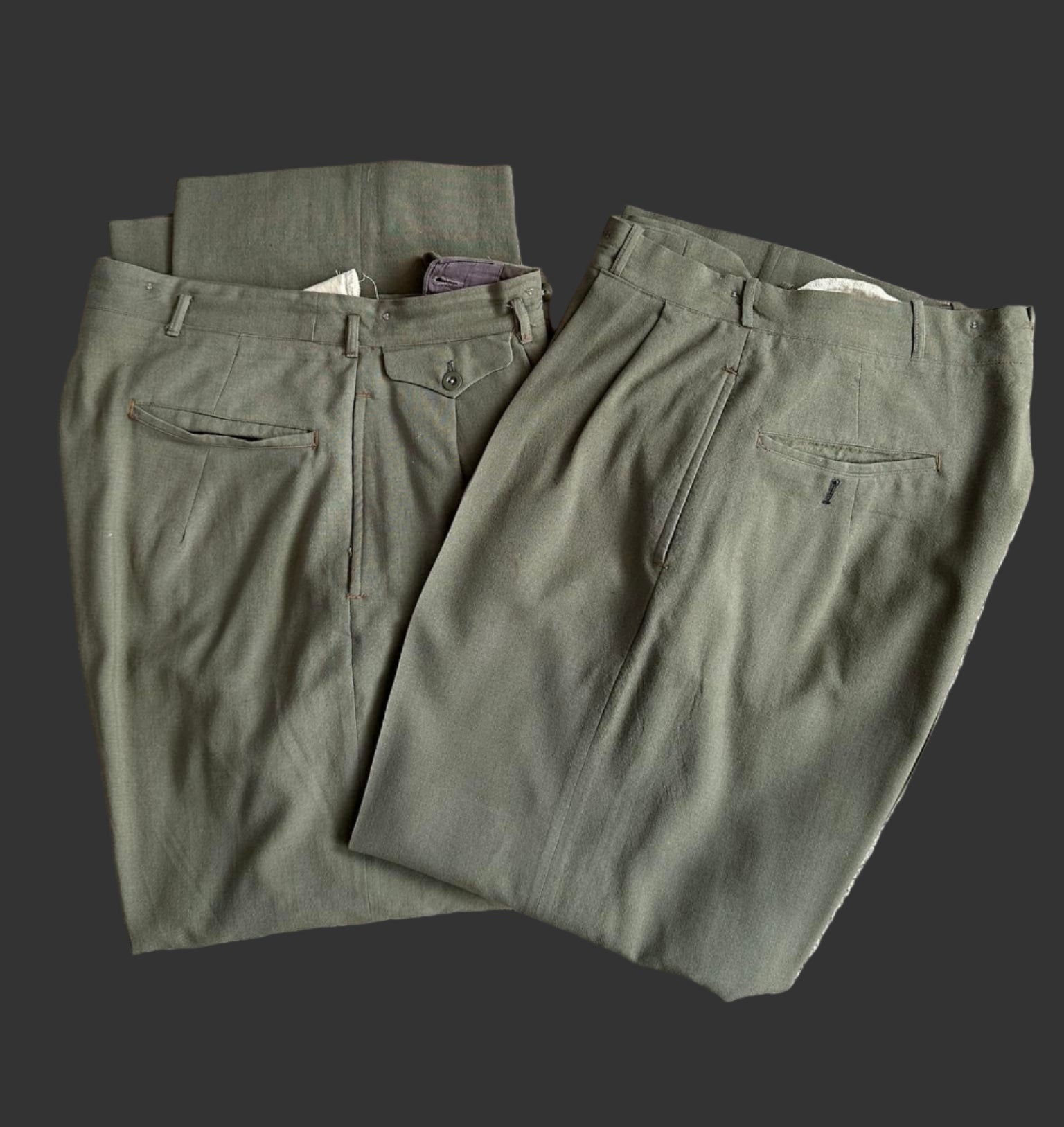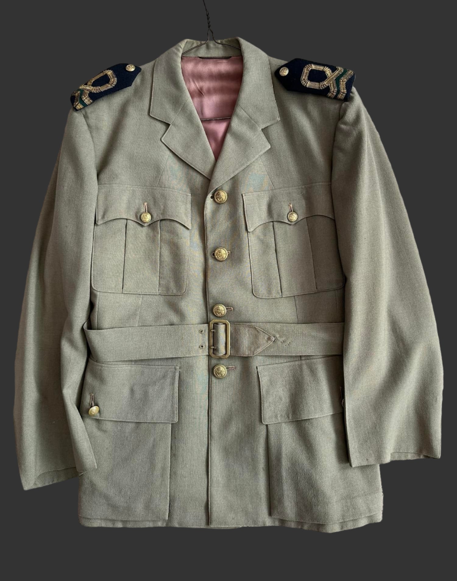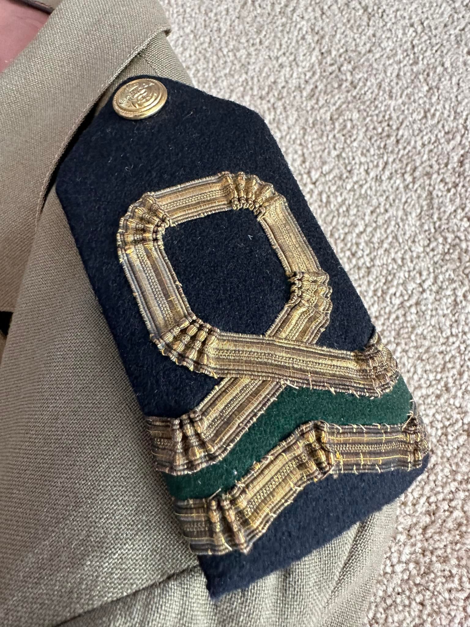 An interesting WWII period Royal Canadian Navy Volunteer Reserve uniform. Appears to be a modified RCAF type tropical uniform adapted for RCNVR use. The exact history of why these uniforms were adapted for navy use is unknown to us but other similar examples are known to exist. Shoulder boards have been attached via tailoring some loops from similar fabric. RCNVR buttons. Comes with 2 pair of pants. Shows wear and use but still very presentable. An interesting and uncommon Canadian Navy uniform.
