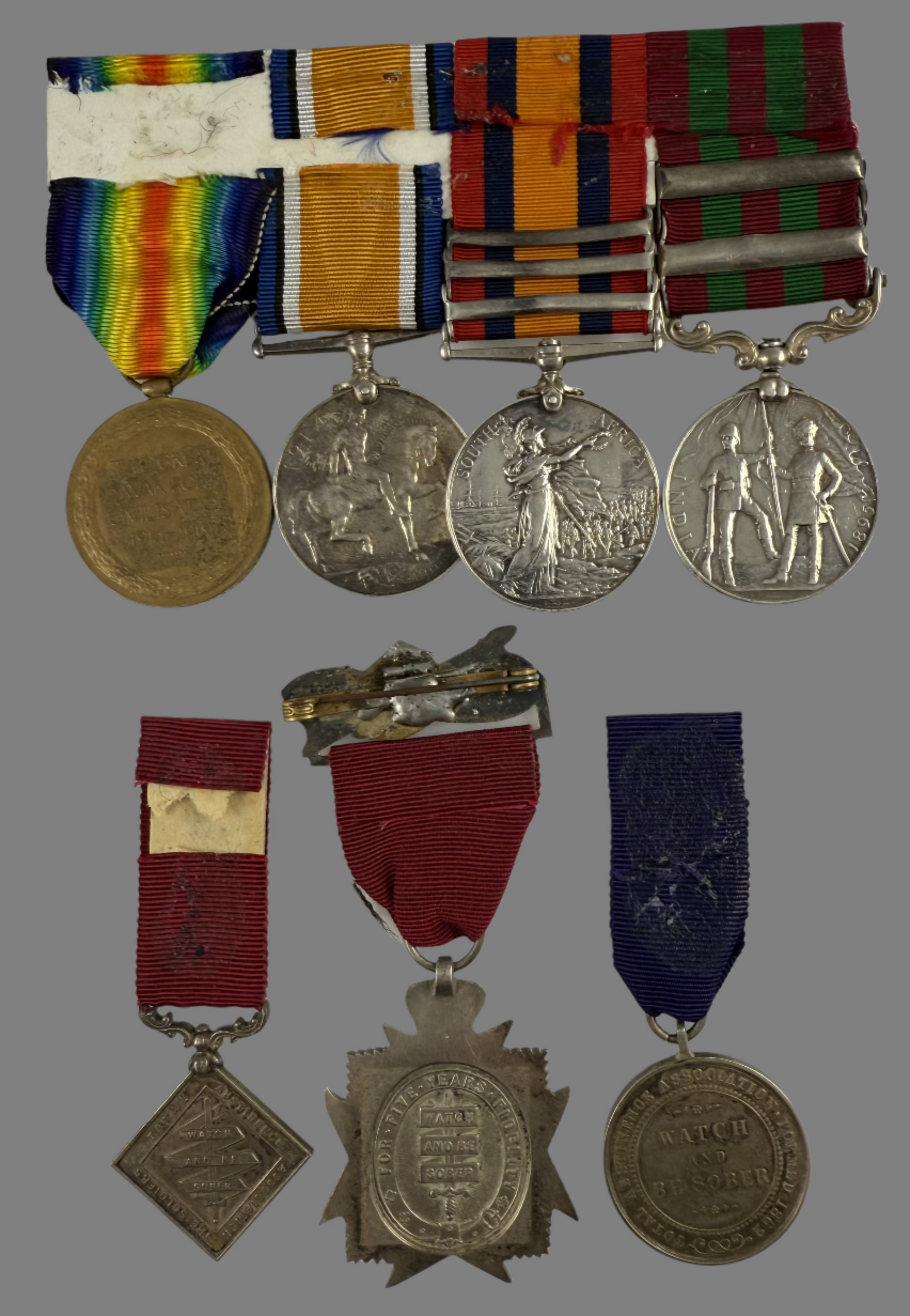 Also included are three sterling silver abstinence medals from his time in the British Army.