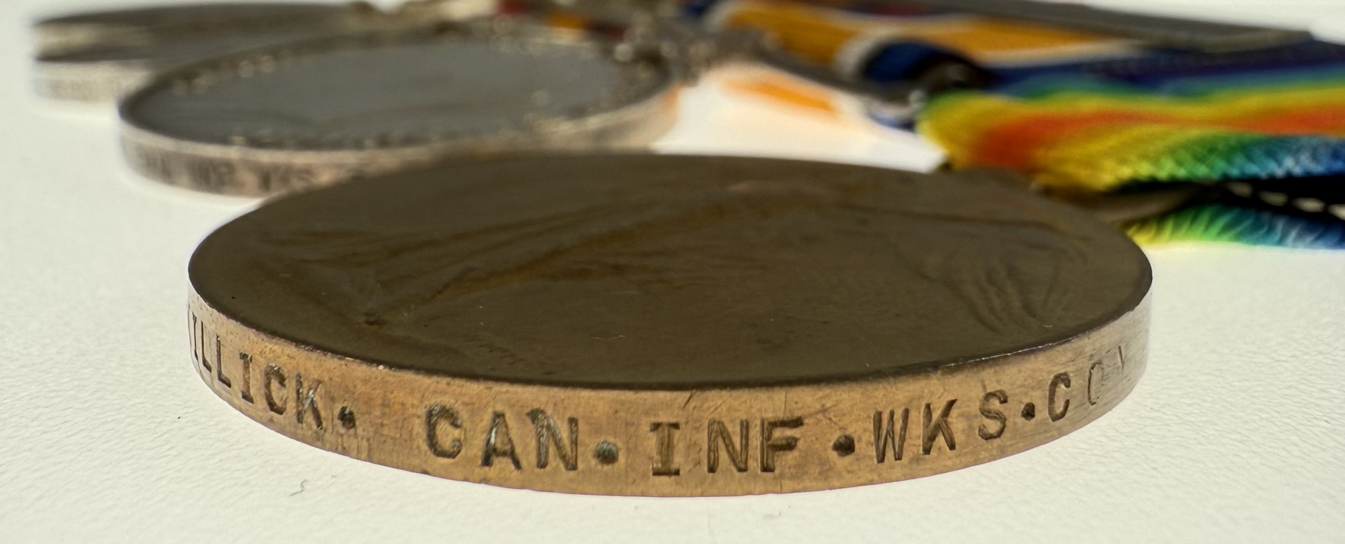 George Frederick Killick (Killock on some documents and his QSA) was born in Redhill, Surrey, England. He served for 12 years in the Gordon Highlanders during which time he was awarded both the IGS and QSA. He immigrated to Canada at some point after his discharge and was working for the Canadian National Railroad in Cobourg, Ontario when he joined the 139th Battalion CEF there in January, 1916. He served in France in the 1st Canadian Labour Battalion and was wounded (GSW right arm) in October, 1917. He died in 1944 and is buried in Prospect Cemetery, Toronto.