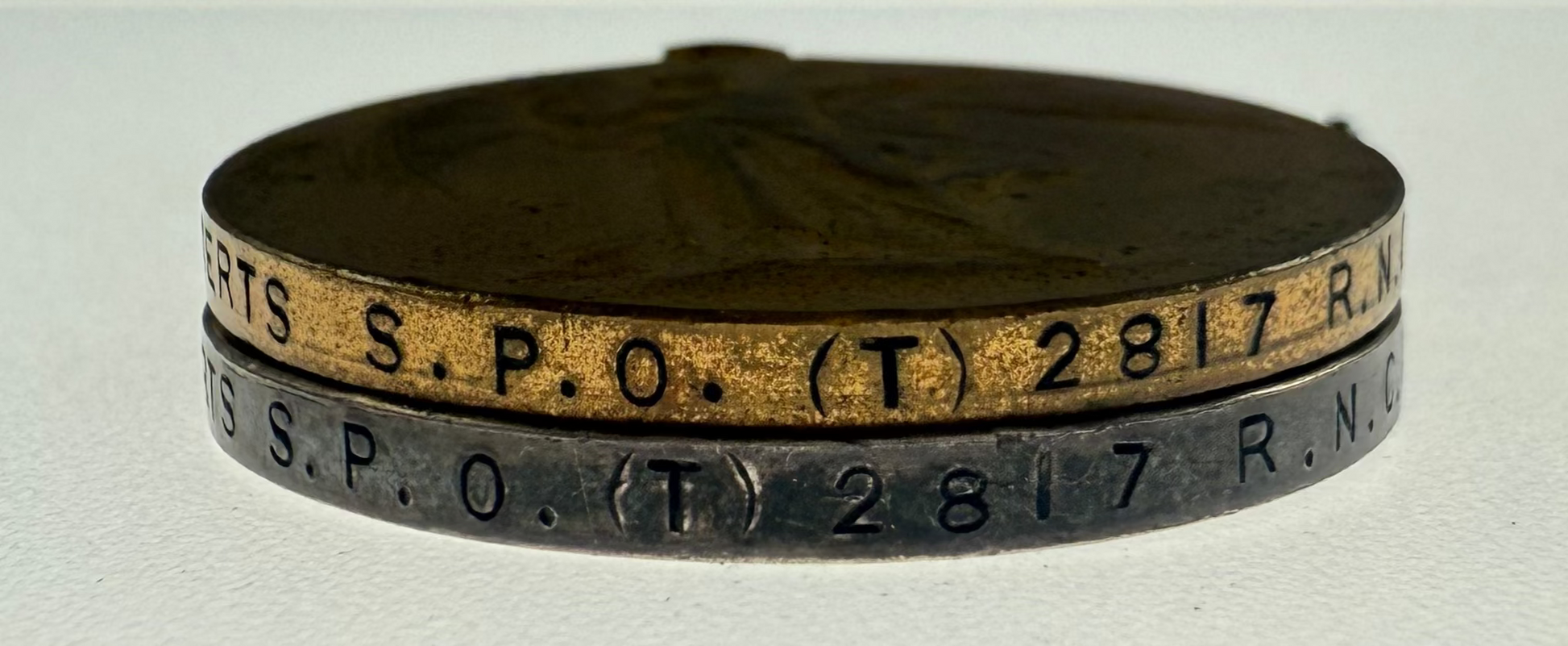 British War Medal, Victory Medal. named: F. Roberts. S.P.O. (T) 2817 R.N.C.V.R.