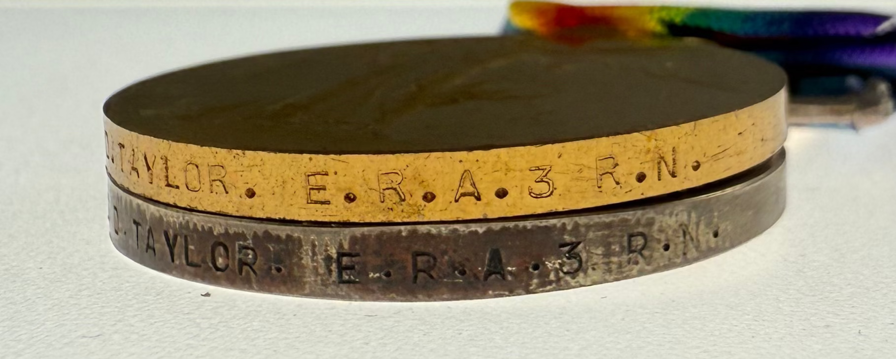 1914-15 Star, British War Medal, Victory Medal. All named to: M.5369. D. Taylor, E.R.A.3. R.N.