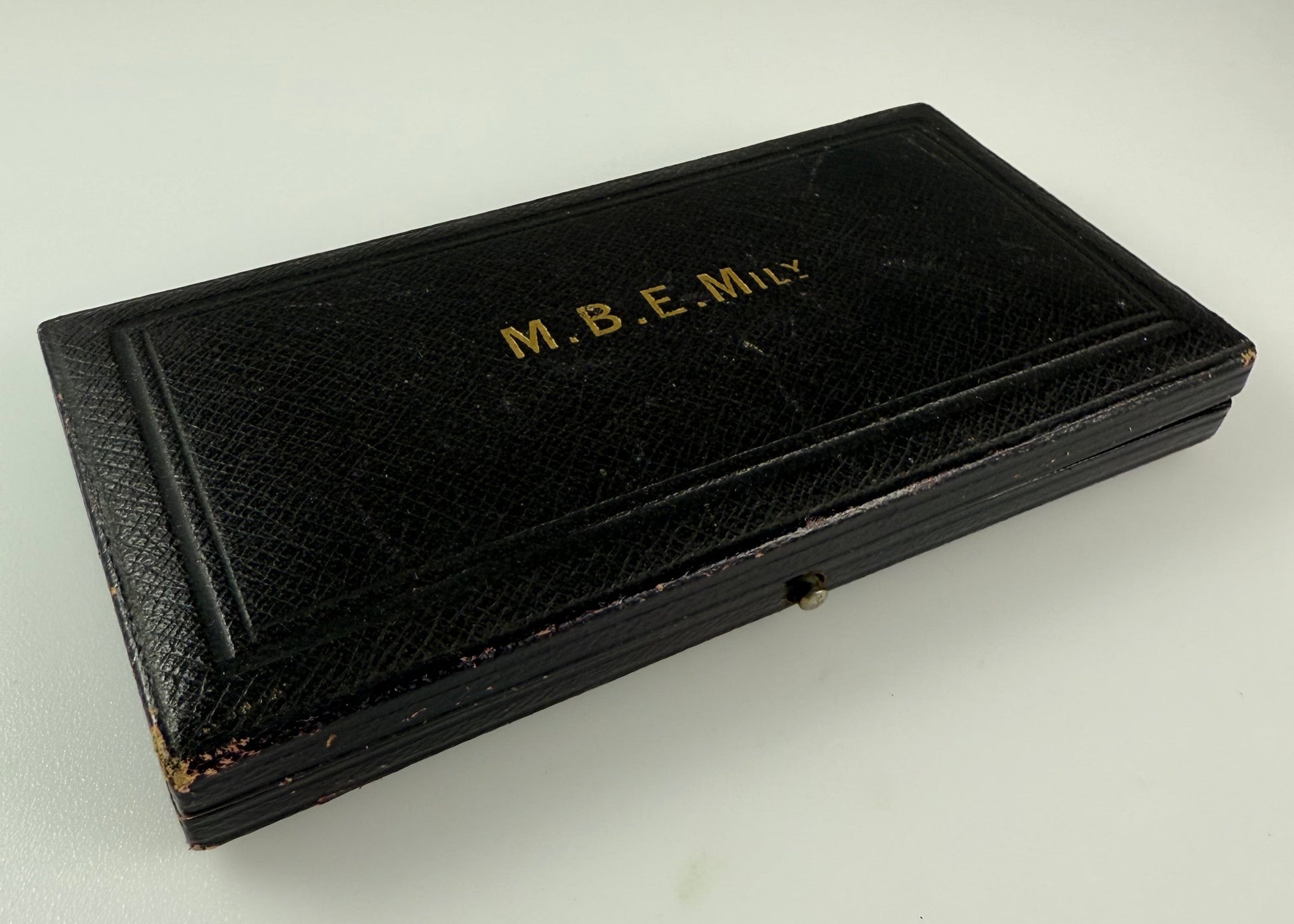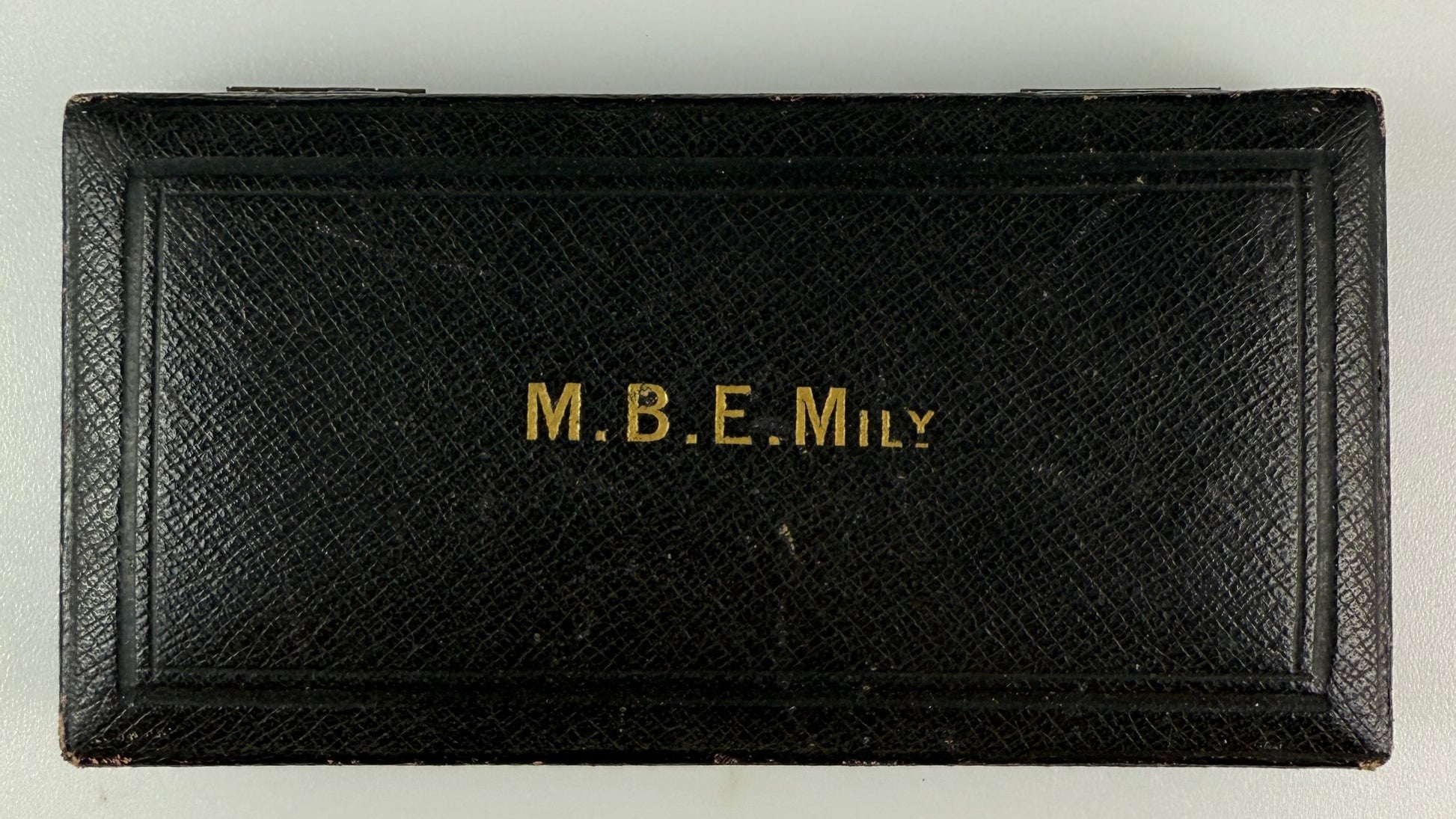 First type Member of the Order of the British Empire. As awarded, on long original ribbon - no brooch, with Garrards bestowal case. Reverse of the medal is hallmarked for 1919. A fine example in excellent condition. Case functions well and exterior shows only very minor scuffing.
