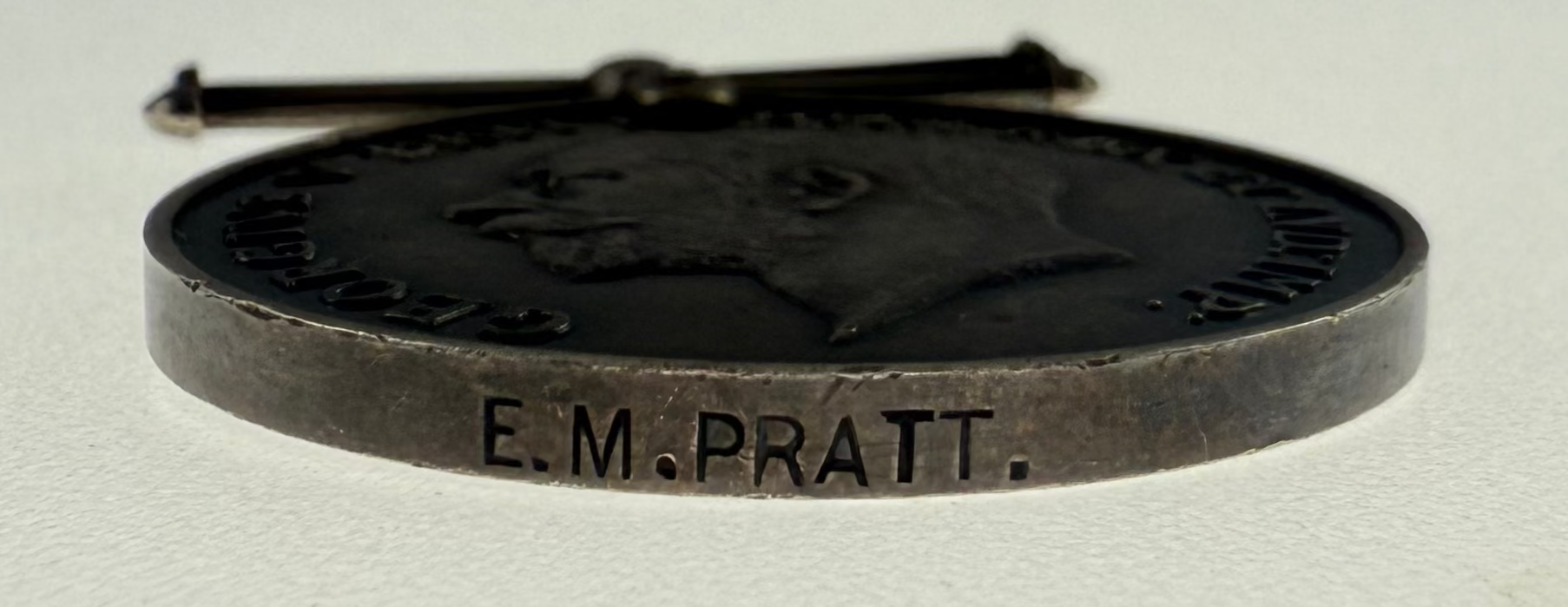 Etta Mae Pratt was from Lisbon Falls, Maine, USA in 1885. She attended the Boston City Hospital School of Nursing (Boston University) and volunteered for the Harvard Medical Unit, serving with them in France. Her BWM represents her sole (British) medal entitlement. A very scarce medal to an American Volunteer in the famed Harvard Medical Unit.