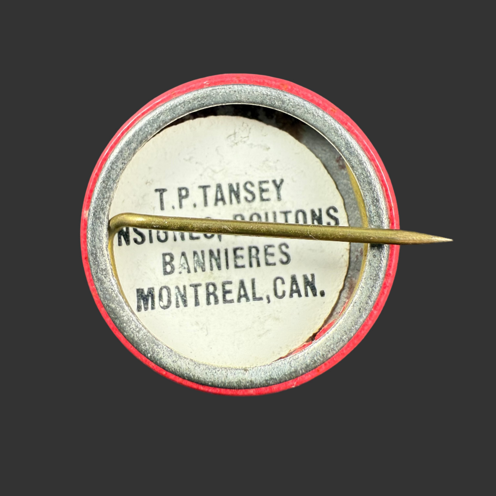 Reverse maker marked: T. P. Tansey - Insignes, Boutons, Bannieres - Montreal, Can.