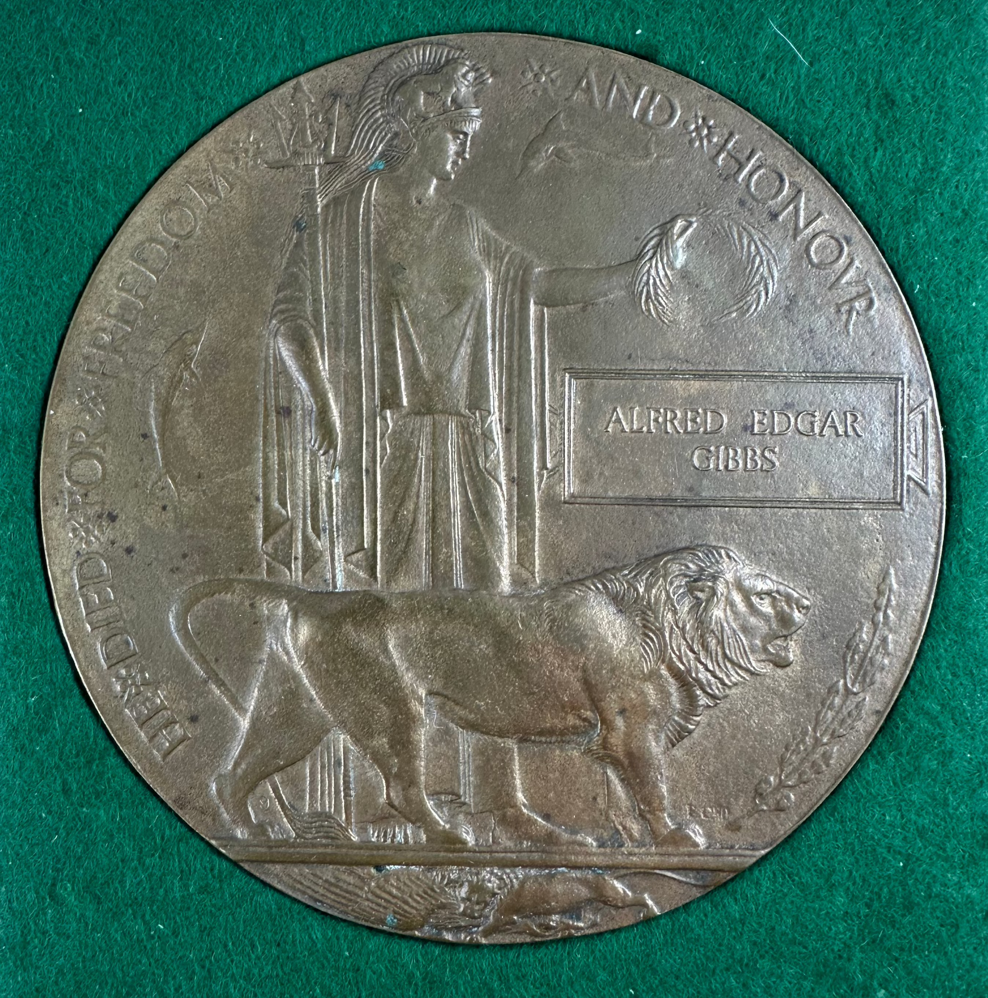 Memorial Plaque named to: Alfred Edgar GIBBS.