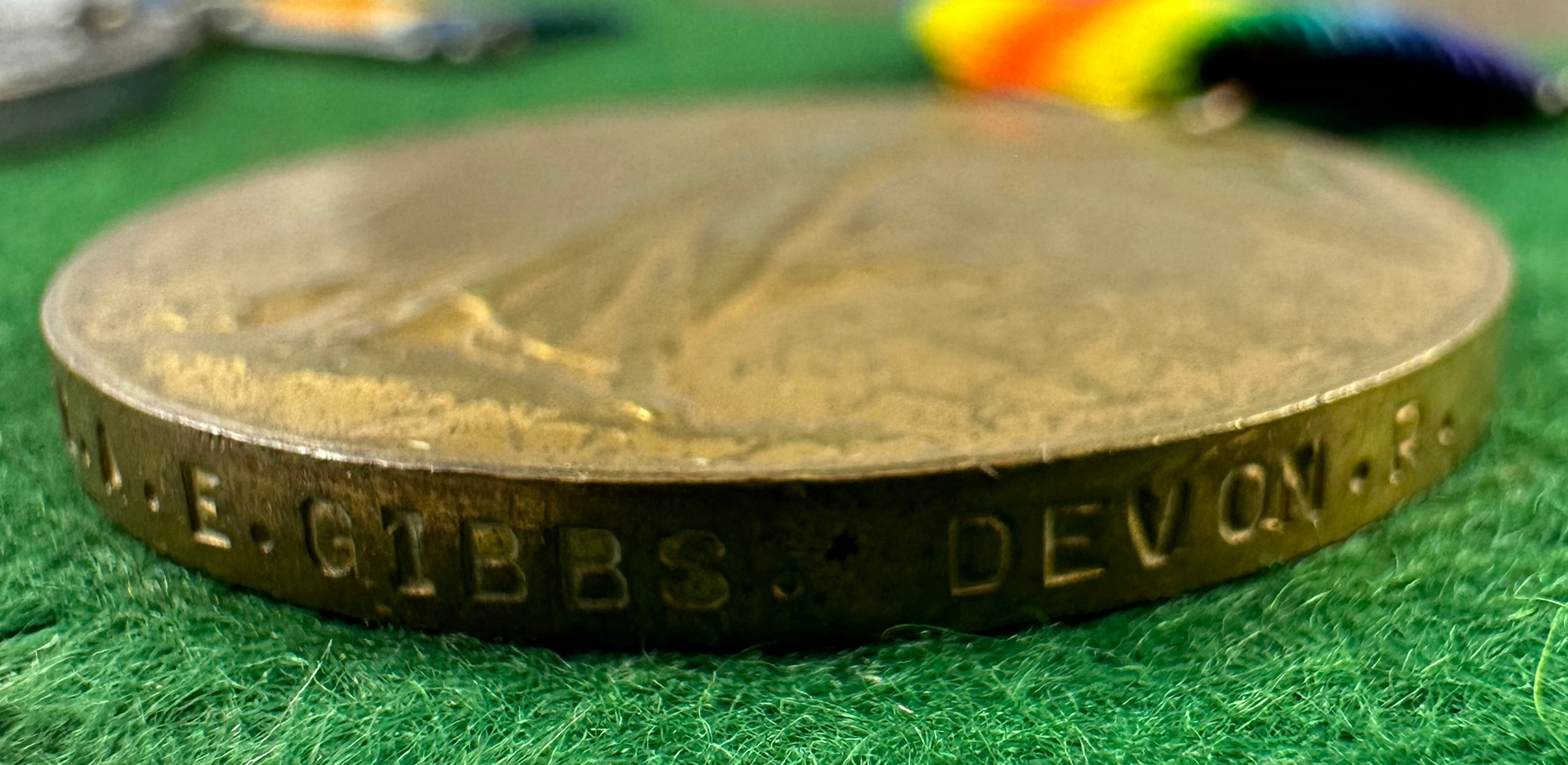 British War Medal, Victory Medal named to: 27663 PTE. A.E. GIBBS. DEVON. R.