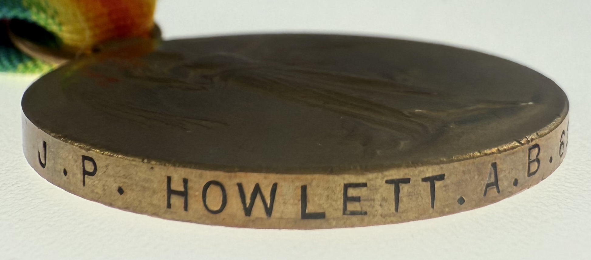 WWI Victory Medal named to: J. P. HOWLETT. A.B. 6273. R.N.C.V.R.