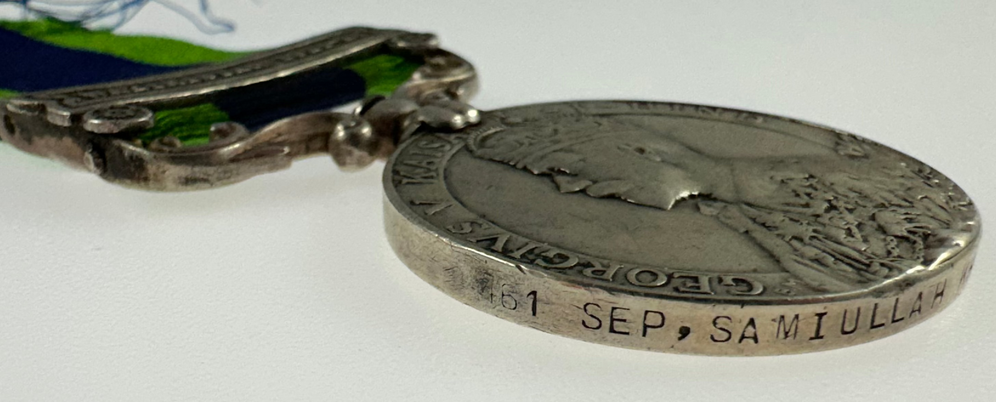 George V Indian General Service Medal with Clasp "Waziristan 1921-24" named to: 461 SEP, SAMIULLAH KHAN, 1-7 RAJPUT. R.